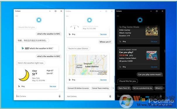 Cortana 的变化比较大,增加了很多对话逻辑,很多操作也不再像旧版本那样动不动就打开浏览器。新界面采用分离式设计,用户可以像拖动窗口一样将Cortana拖动到屏幕上的任意位置。另外,新的Cortana还增加了对夜间模式的支持,而在此之前……它不起作用!
