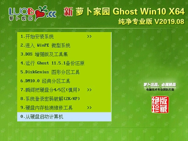 萝卜家园Ghost Win10 64位 纯净专业版v2019.08描述: