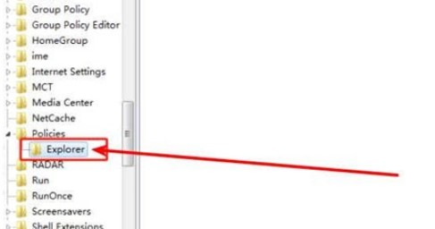 3.按照此方法,依次打开“Microsoft”-“Windows”-“CurrentVersion”-“策略”-“资源管理器”。