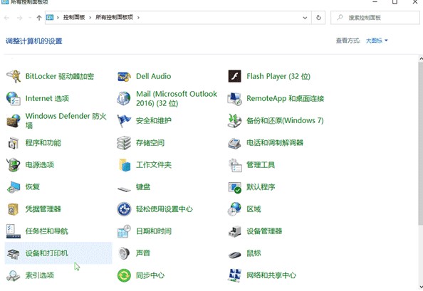 2. 单击查看模式,更改为大图标,然后打开网络和共享中心。