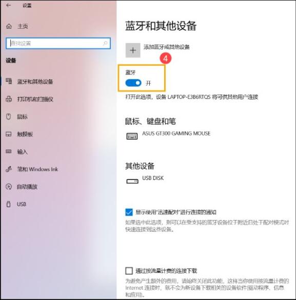 3. 单击“蓝牙和其他设备”,然后打开蓝牙。
