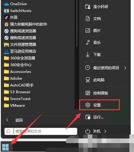 1. 首先打开“开始”菜单,然后单击“设置”。