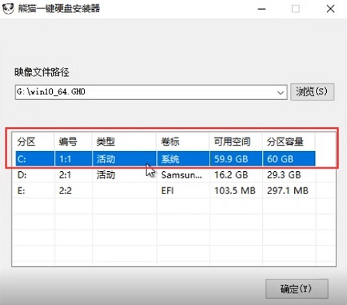 2、点击打开exe一键安装程序后,选择C盘(系统盘)进行安装,点击确定。这里要注意不要选错了。