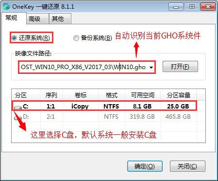 C磁盘分区必须至少为60GB。安装完成后,C:磁盘将占用约10GB。本系统已自动启动