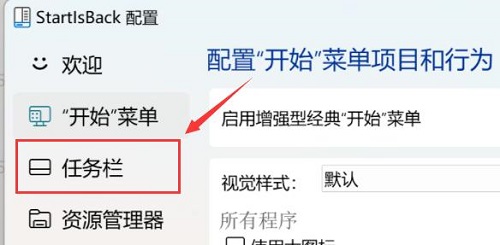 下载startallback软件——打开软件点击左侧任务栏——将合并任务栏改为never。