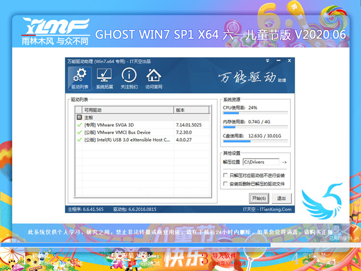 系统稳定性是计算机正常使用的最重要因素之一。系统出现蓝屏、卡顿、死机等问题,大多是由于系统稳定性不够造成的。这款御林木风Win7 64位安全稳定版v2020.06很好的解决了这些问题,恢复了原系统的所有功能。硬件驱动、安全补丁、系统插件等都非常齐全。它可以自动识别计算机硬件型号等,缩短您计算机的安装时间。