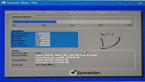 系统ghost完成后,系统会自动安装。系统安装完成后,重启即可正常使用。
