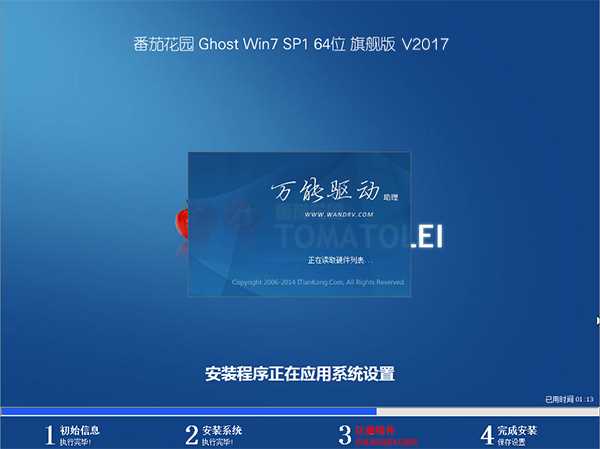 番茄花园幽灵WIN7 SP1 64位完美安装版安装流程: