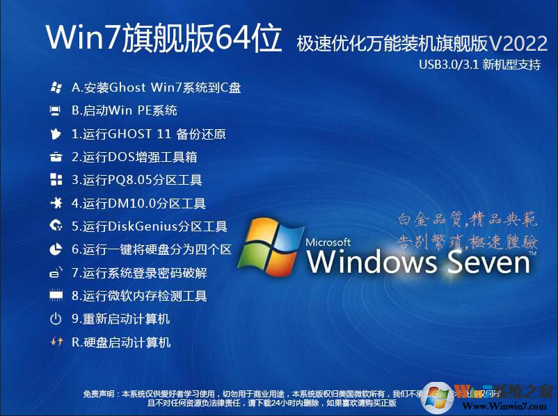 1、由于使用新的通用驱动,系统体积超过4G,不再支持刻光盘,或直接写入空U盘安装;