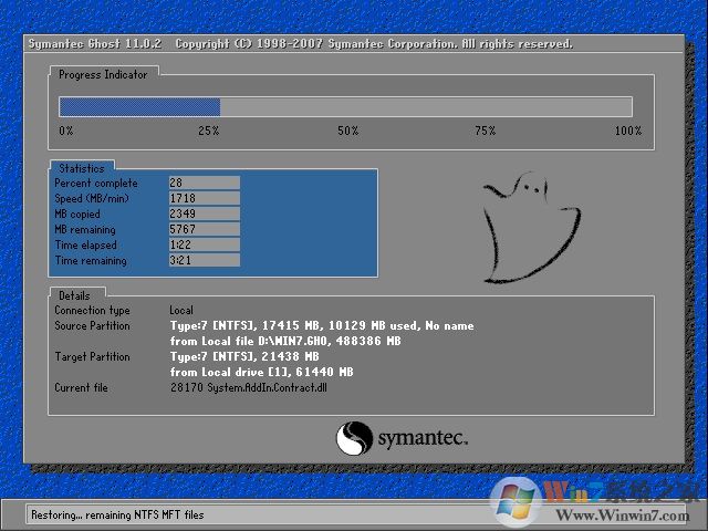 6、下载完成后,重启后将开始系统恢复操作;