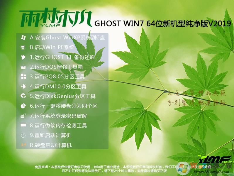 1、本作品雨林木风Win7用于与网友交流系统打包部署经验,也可用于PC硬件的临时安装和测试。请在安装后24小时内拆除。如果需要长期使用,请购买正版系统和软件。