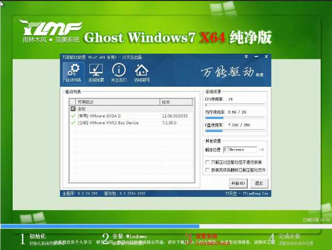 玉林慕风Win7 32位纯净版安装流程图,自动安装硬件驱动,整个过程需要2-5分钟。