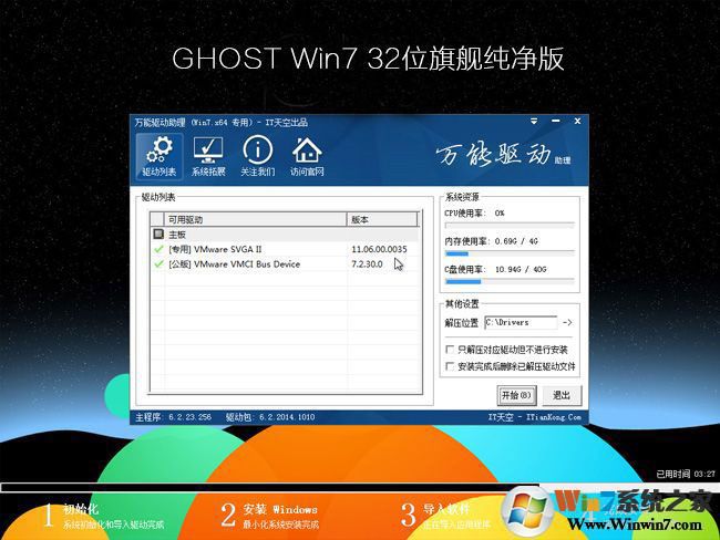 系统大小约为3.2G,主要是目前的万能驱动太大,所以不要介意下载体积大,安装后不会占用太多。