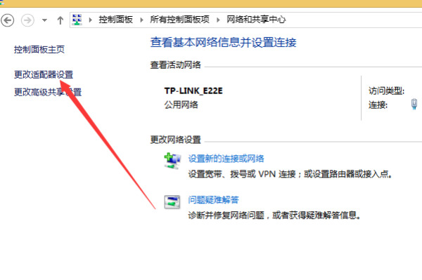 3.进入网络和共享中心后,点击左侧的【更改适配器设置】按钮;