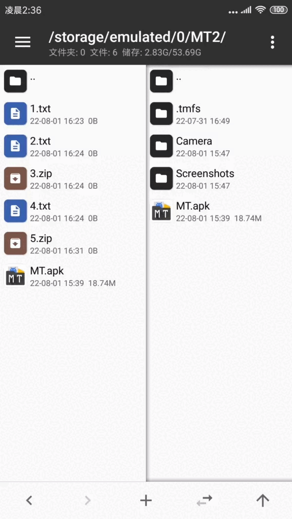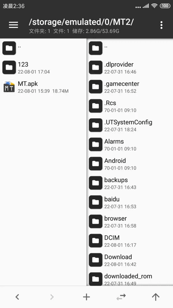 进入MT Manager后,首先看到的是左右两个文件列表窗口。