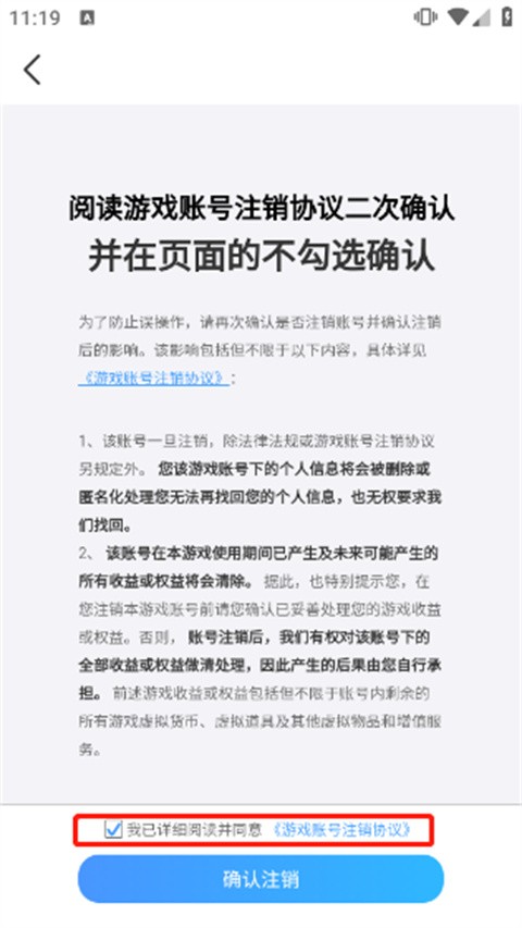 3. 勾选取消协议,然后单击“下一步”。第二次确认取消协议后,点击“确认取消”;