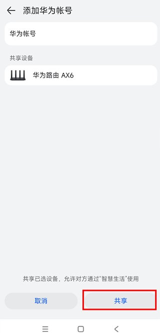 4. 输入您的华为账号,点击确定即可分享。