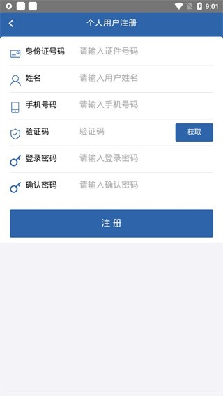 1。打开从业自助移动应用程序,新用户需要单击以注册;