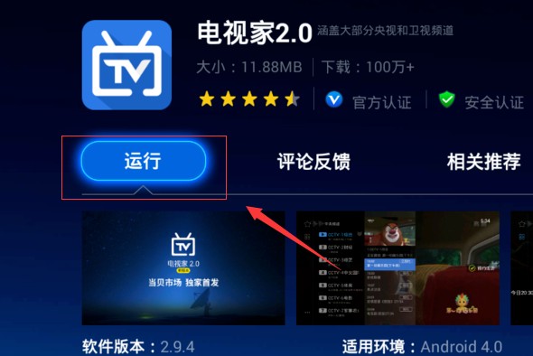 7。搜索后,电视家出来了。单击“运行”以观看Gao Daoqing的电视频道。