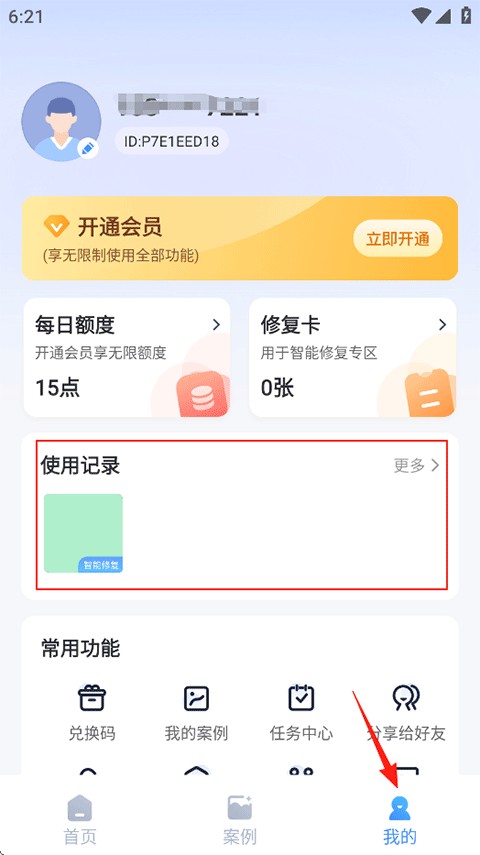 1、打开老照片修复APP,点击首页的照片修复功能;