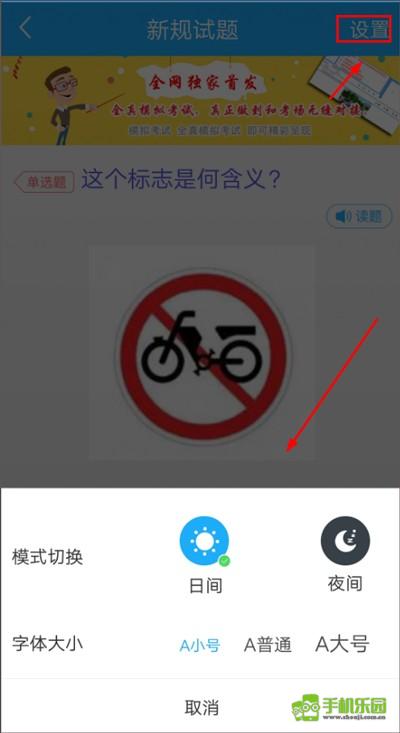 3、模拟考试前,我们可以点击下方图标进行设置:字体、模式切换;