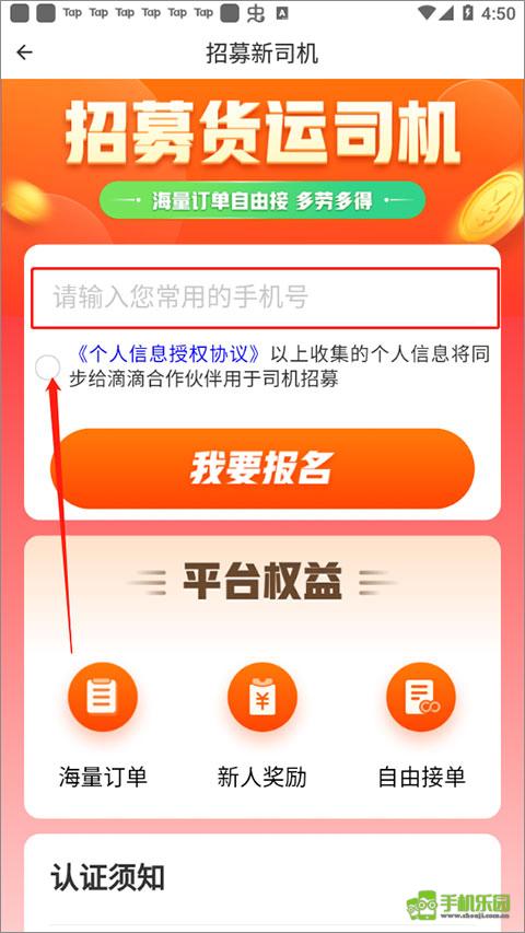 4、如果您符合要求,可以输入手机号码,查看条款,点击【我要注册】加入。