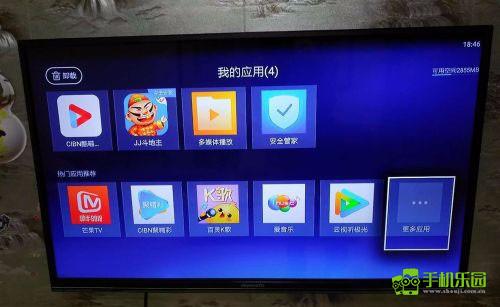 2、接下来需要在智能电视或电视盒子上安装“悟空遥控”接收APP。点击盒子自带的应用程序库,如图,进入“我的应用程序”,点击“更多应用程序”。