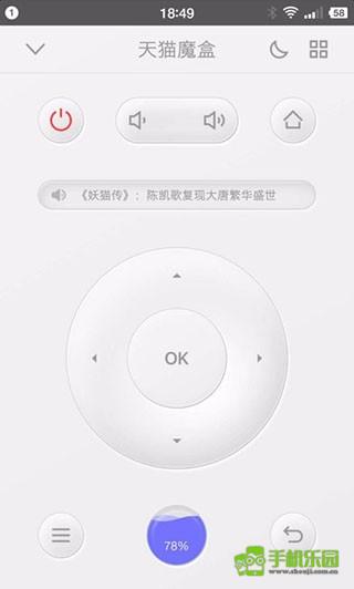 安装完成后,重新连接手机上的阿里云盒子,即可成功完成连接。打开界面后,有很多功能。如果需要使用遥控器,点击底部中间的蓝色按钮即可进入远程控制界面。使用遥控器