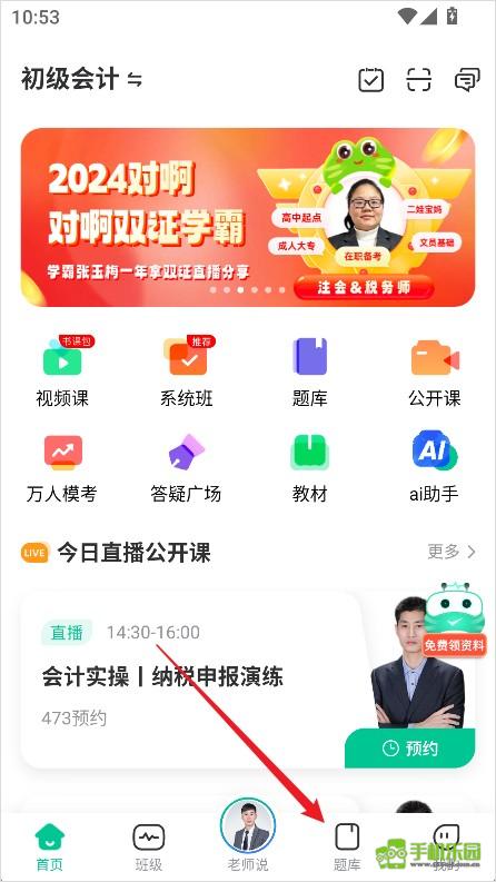 1.打开对啊课堂App,点击底部导航栏的题库。