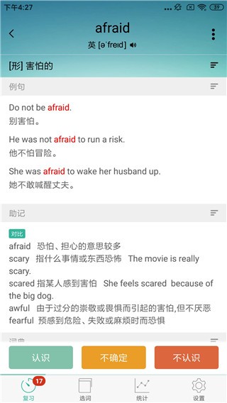 你可以清楚地看到你所学单词的熟悉程度。