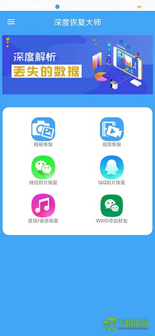 1、下载本站提供的升级版本深度恢复大师。进入首页后可以看到提供了微信、QQ、图片、视频的恢复功能;