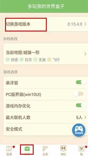2、返回上一级,切换游戏版本下栏选项是否开启,会影响游戏内体验;