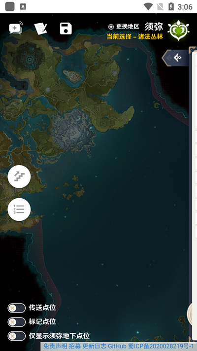 2. 易于操作的工具,查看简单、方便。左边是菜单栏,右边是地图。玩家在左侧菜单栏中选择一个或多个要查询的资源,所有查询到的资源的位置都会显示在右侧地图上。当资源处于查询状态时,玩家再次点击左侧菜单栏的资源槽位即可取消对该资源的查询。