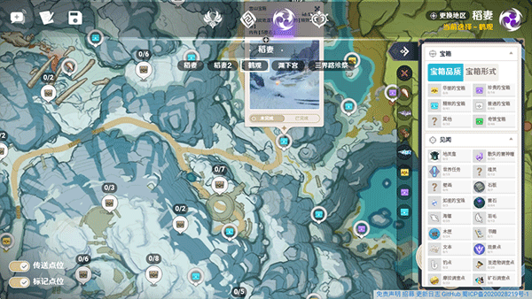 3.提供风神瞳、岩石神瞳、宝箱、野外boss、七天神像、NPC、传送点、地窟、矿产、秘境等资源点的详细分布位置。