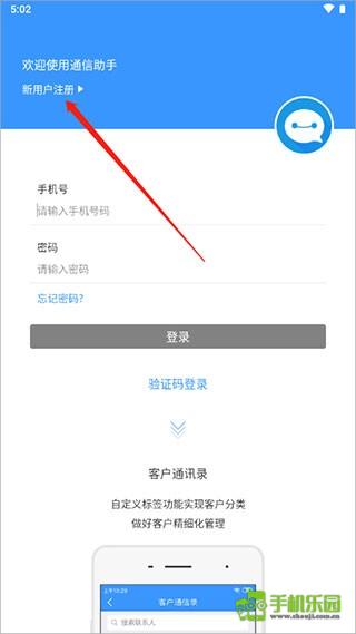 1、打开通信助手软件,点击左上角“新用户注册”;