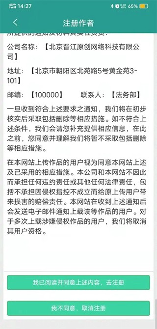 3. 仔细阅读合同条款,然后点击注册。