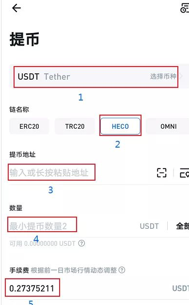 3、在火币上开通提币,注意选择HT代币,选择HECO链。