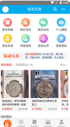 拍卖会员区(钱币服务厅、杂项服务厅)是我们的主打产品,人气活跃,成交量高。特别适合急于销售和想要快速进货的商家。