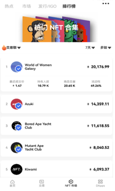 具体来说,OKEx DeFi Hub由资产仪表板和NFT市场两部分组成。前者提供多链、多钱包、多资产管理功能,允许用户在一个界面上跟踪多个公链和不同DeFi 协议的资产组合。后者为NFT资产提供一站式服务,让用户可以参与一级市场和二级市场的NFT交易。它还具有各种创新功能和灵活的玩法,目前0手续费。
