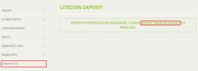 3、比如充值LTC,点击后会提示您进行身份验证。