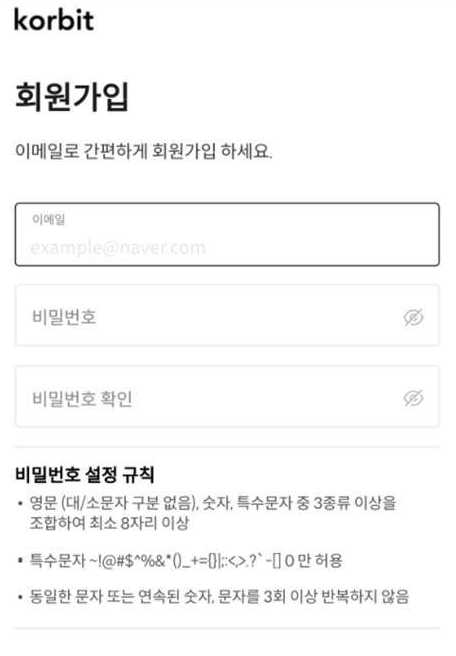* Korbit 根据其安全政策原则上每人使用一个帐户。