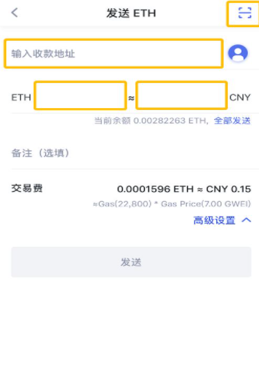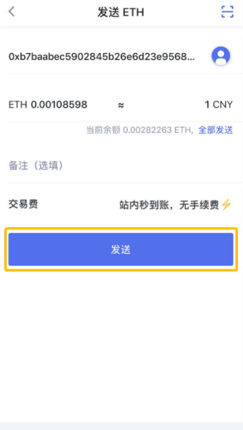 1、(以云钱包ETH为例)进入云钱包——,点击进入ETH币种页面——,点击【发送】;
