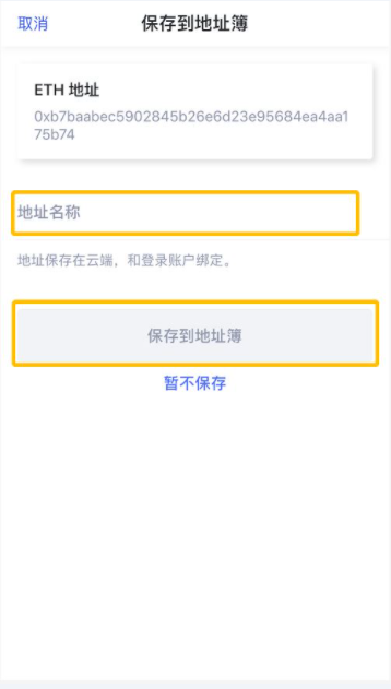 7.您也可以将此地址保存到通讯录中,并命名,方便以后转账!