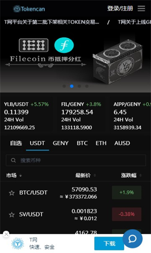 2、T Network(Tokencan)是一个数字货币交易平台,旨在帮助全球用户快速、安全地交易各种数字货币。平台提供多种数字货币交易服务,为用户提供安全可靠的兑换软件,实时监控币市行情。
