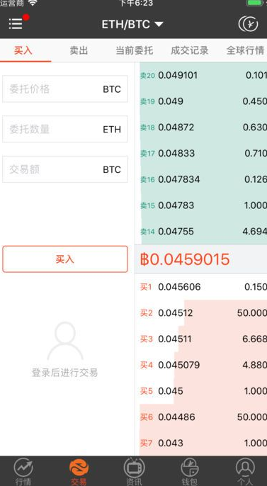 3、选择交易对后,您可以进入该交易对的交易页面。在交易区输入“委托价格”和“委托数量”进行买入或卖出。 (提示:您可以直接选择右侧市场挂单列表的价格,输入数量,即可立即完成交易)