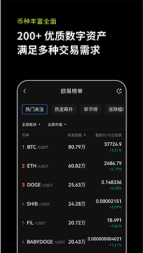 提供法币和货币货币通道,严格挑选优质币种。