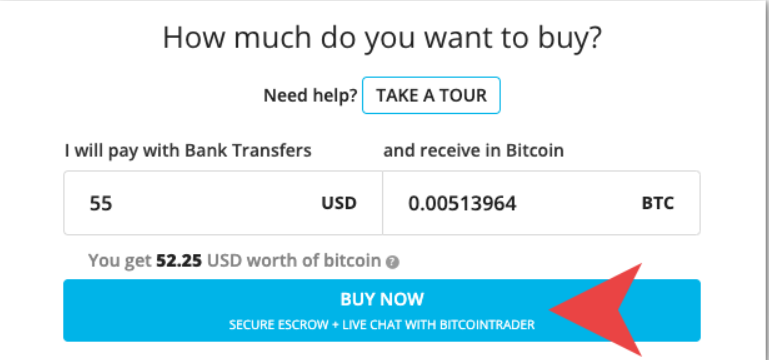 在法定货币字段或比特币字段中输入您想要交易的金额。点击立即购买。