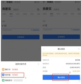 2、打开欧易OKX APP后,点击页面下方的法币按钮,进入法币交易区,选择快捷区,我要购买;选择要购买的货币,输入要购买的金额,或要购买的货币数量,点击立即购买。