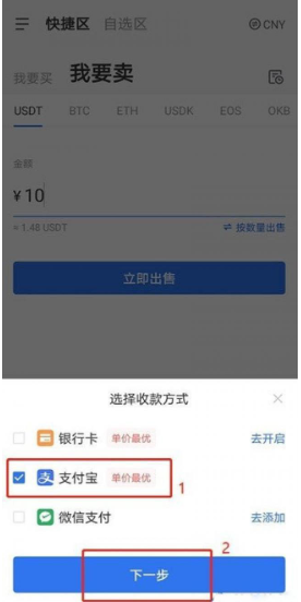 2. 选择所需的付款方式,例如支付宝,单击“下一步”,然后单击“确认销售”。