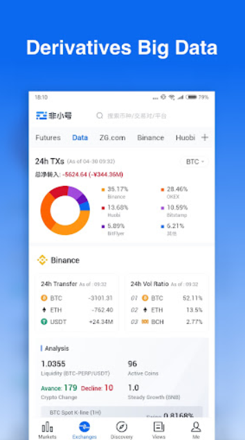 3、交易所对比:飞小号收集了全球多个主流数字货币交易所的数据。用户可以轻松比较不同交易所的价格差异,以及交易所交易量、流动性等指标。